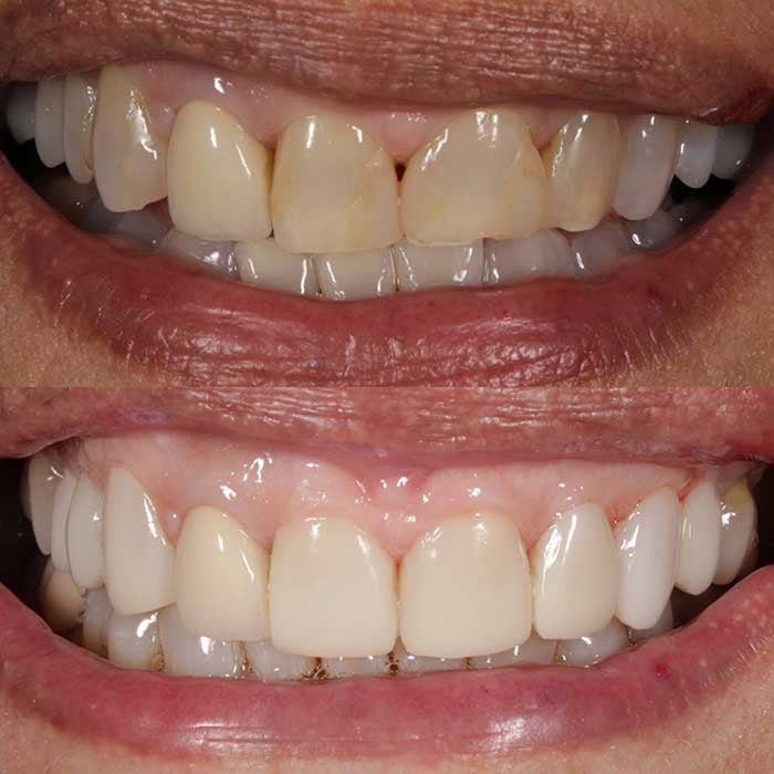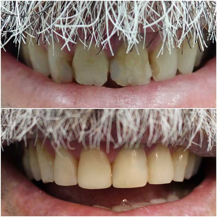 When a more durable and beautiful restoration is needed, either to repair & strengthen, or to improve appearance, porcelain veneers or crowns will do the trick.